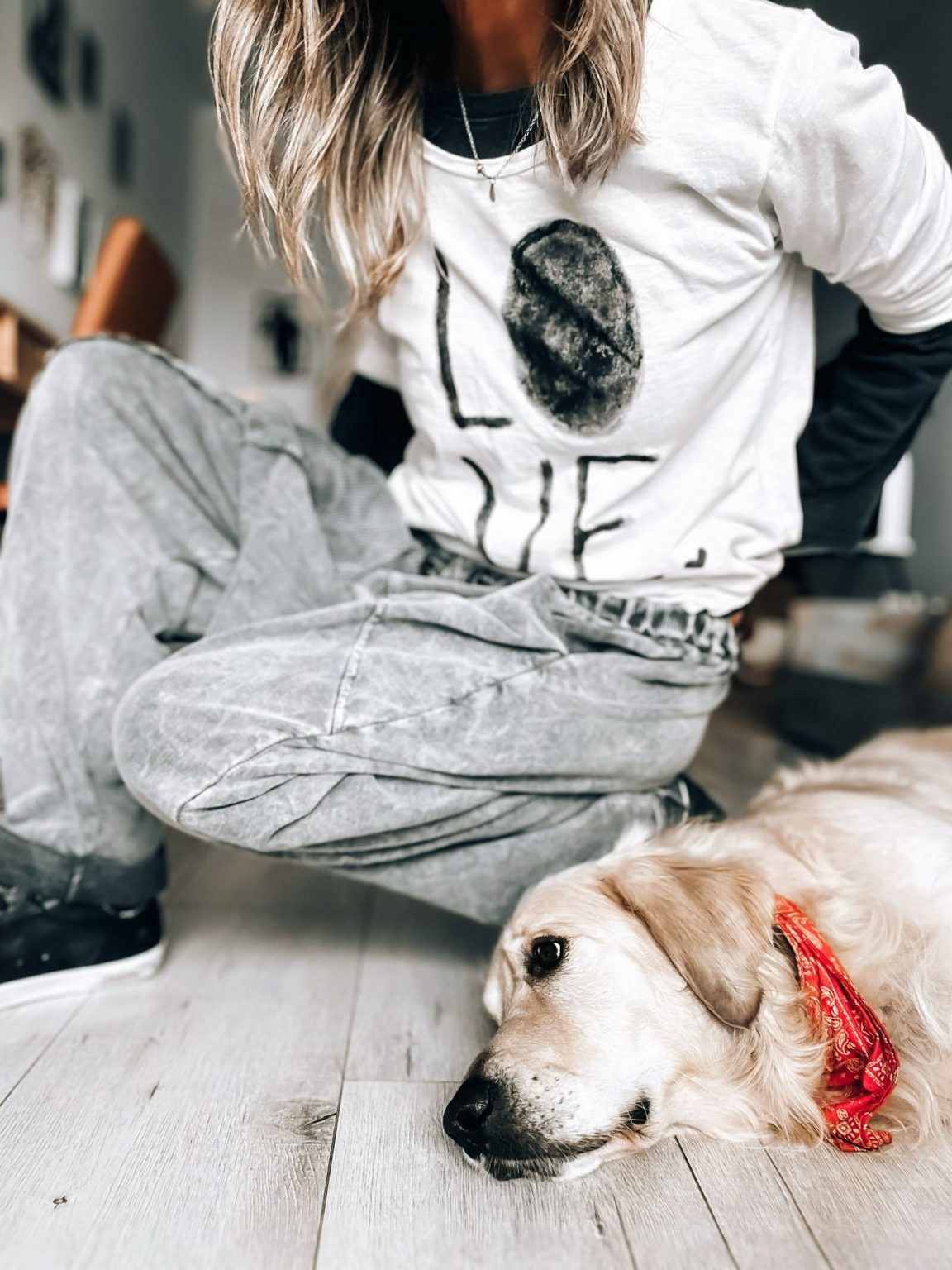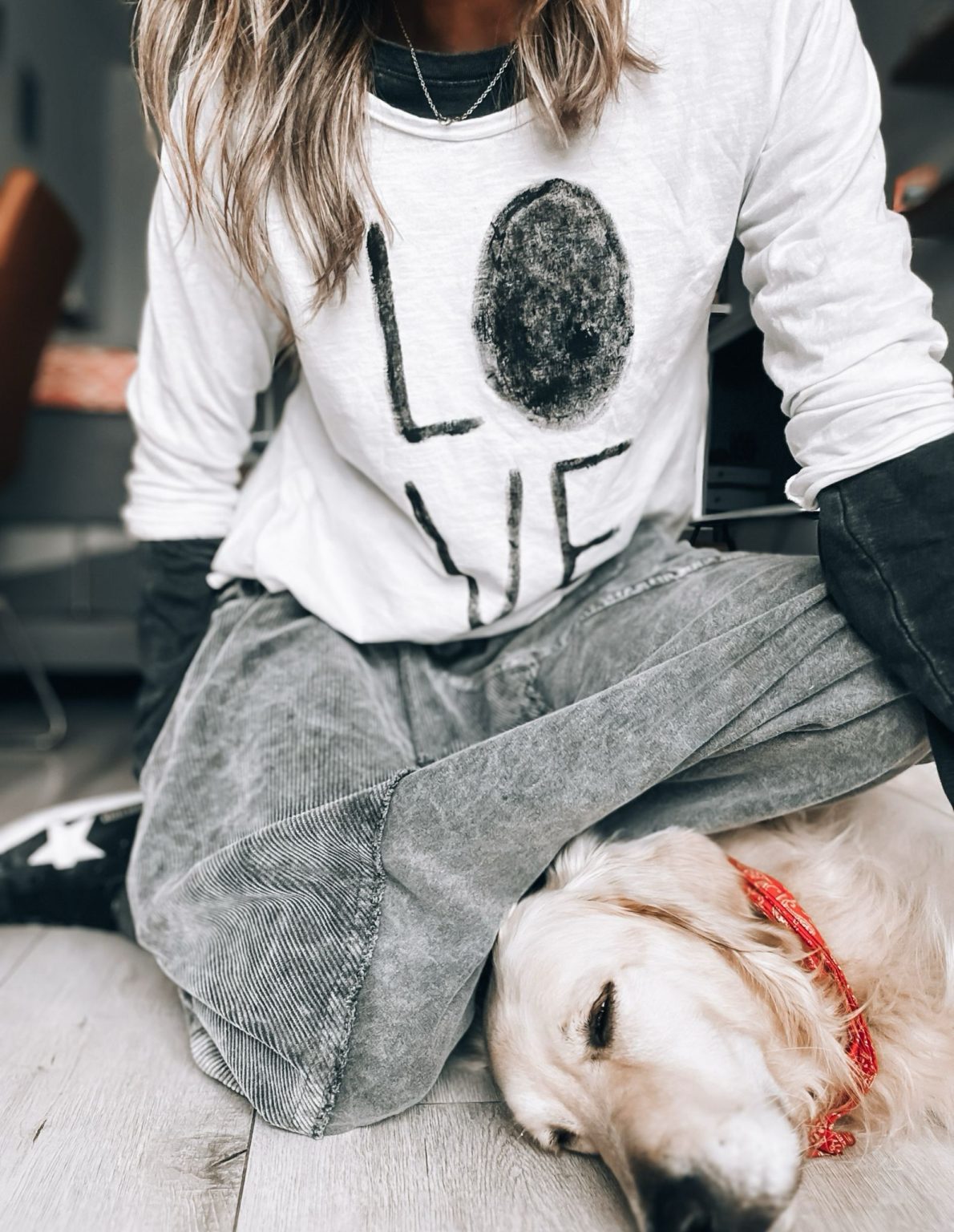 Camiseta blanca manga larga con uno de nuestros diseños Love a juego con el bagó gris (el diseño lo podemos hacer en el color que mas os guste).