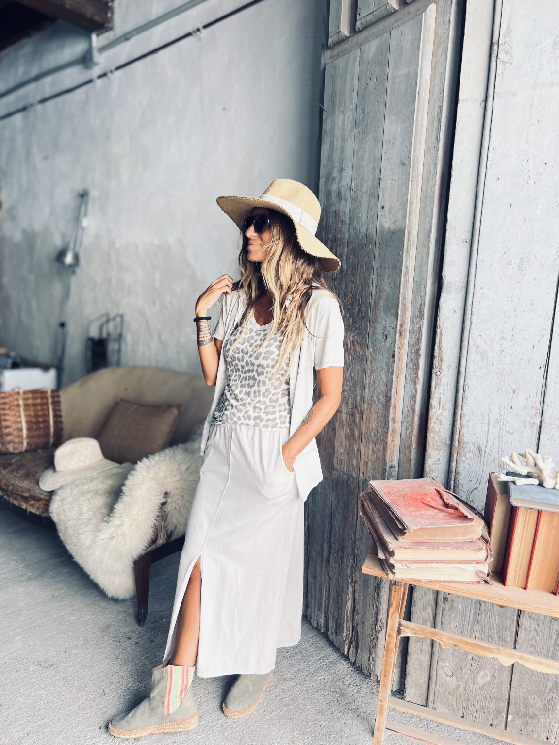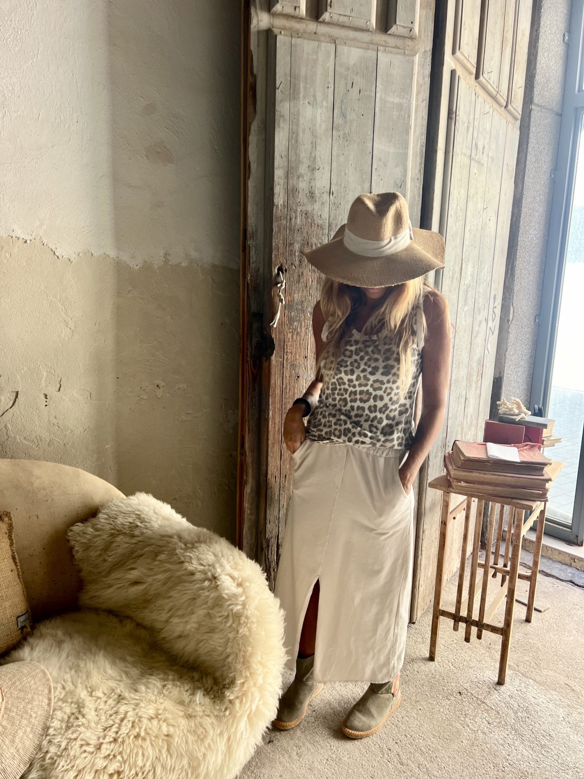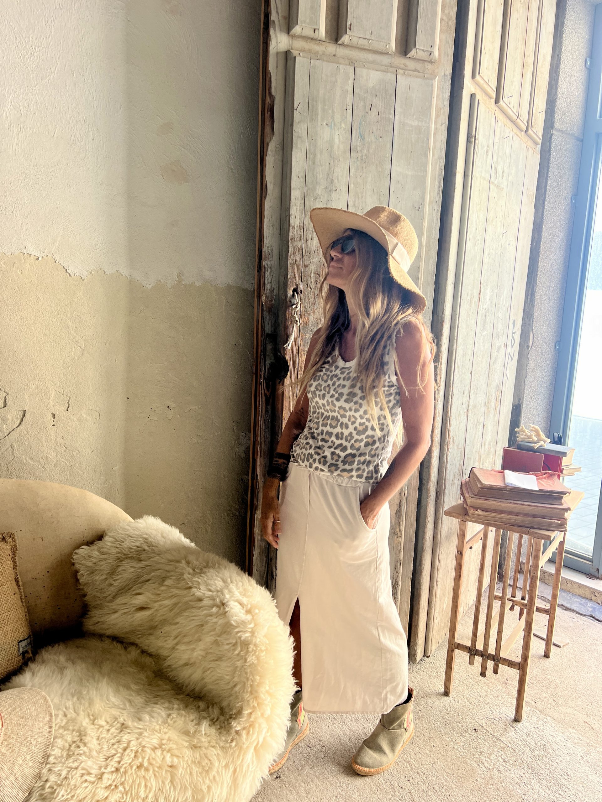 Falda algodón 100%, talla única para S, M y L, queda fenomenal con la camiseta leopardo con camisa manga corta algodón abierta o se le pude dar un toque atándola con un nudo en la cintura.